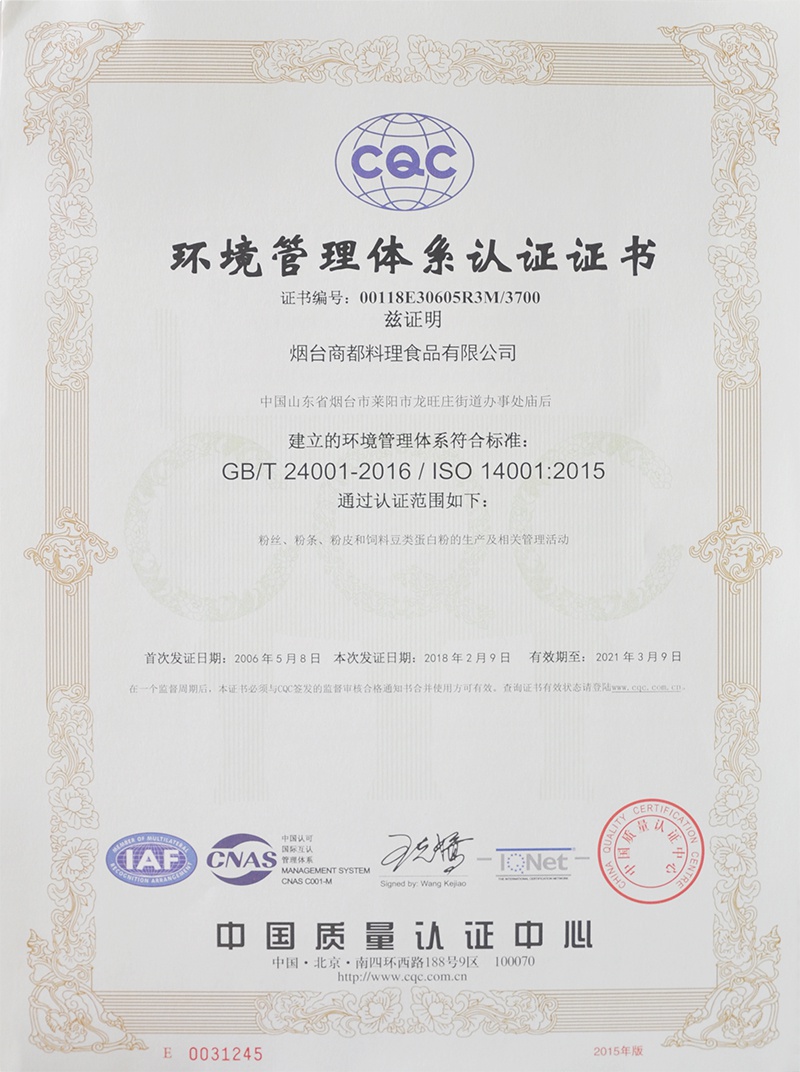 商都料理公司通过ISO14001环境管理体系认证
